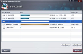 Wondershare Photo Recovery es un programa recuperador de fotos muy confiable! Para aquellos usuarios que desean recuperar fotos, videos, y audios perdidos debido a un borrado accidental, formateo, infección por virus y otras razones desconocidas. Pueden recuperarse los datos desde una PC, tarjeta SD, memoria USB y otros dispositivos de almacenamiento.